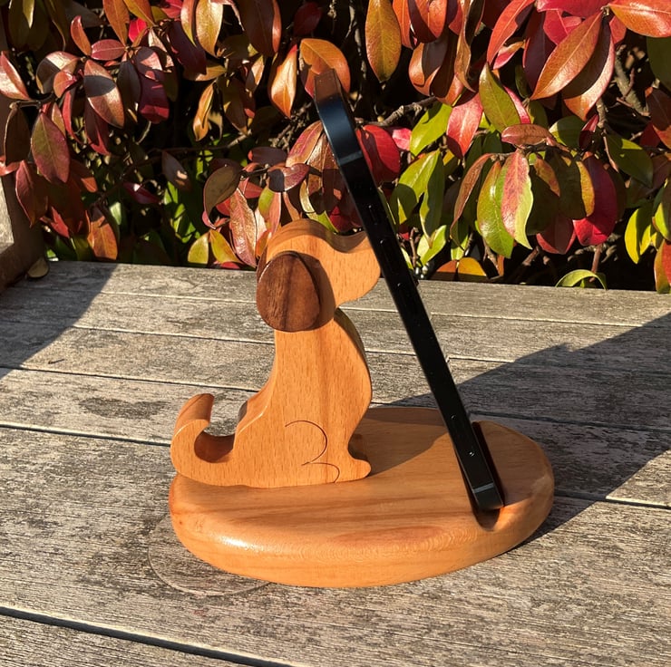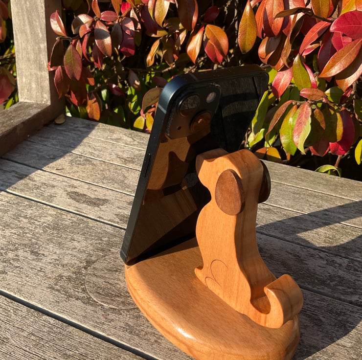 These wood phone stands make an ideal way to support your phone at a convenient angle on a desk or bedside table. The stands are designed to cater for small or larger phones, the pictures indicate iphone (146 x72 x 6mm).