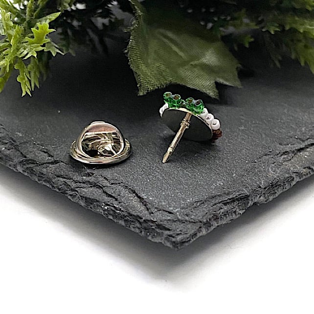 The finished pudding measures approximately 12x12mm and is attached to a tie pin with clutch back using professional jewellers glue.