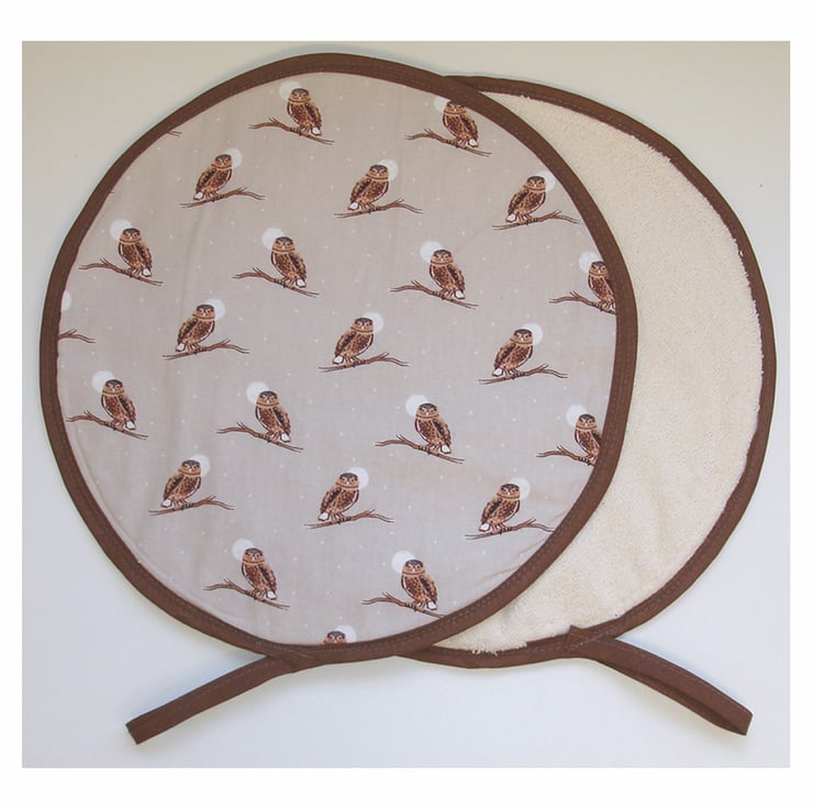 Aga Hob Lid Mats Owl x 2 Pads Hats Round Cover With Loop Brown Owls Moon Pair