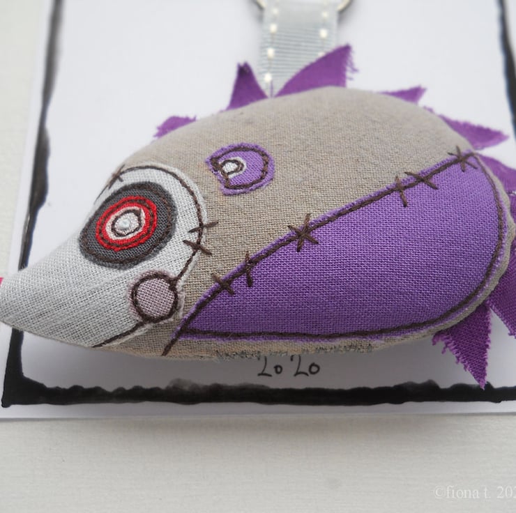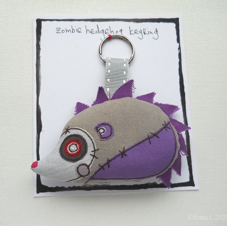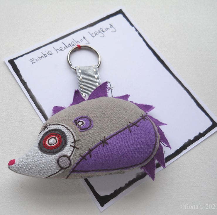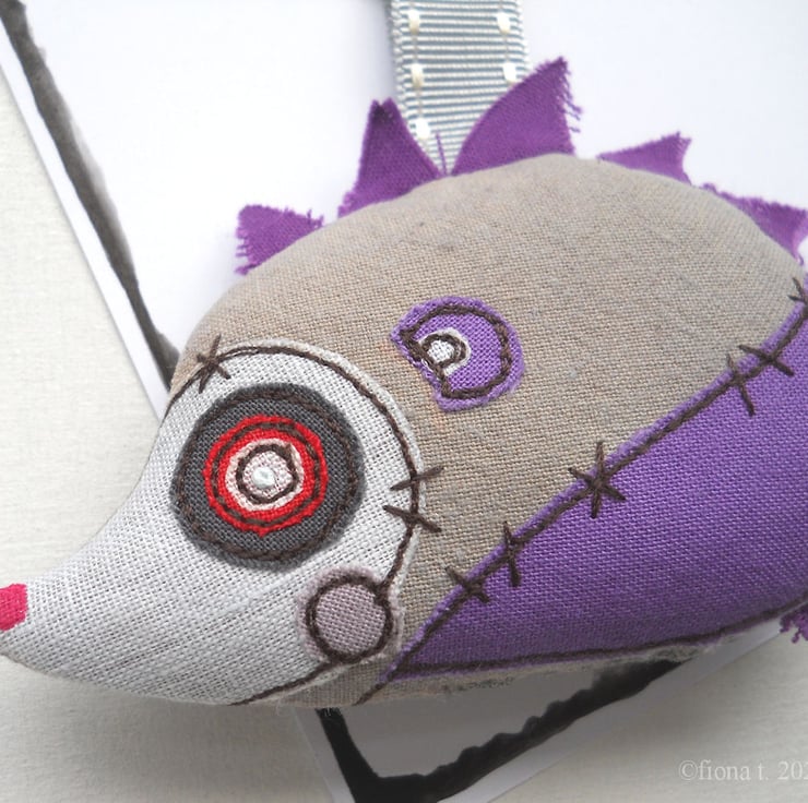 freehand embroidered zombie hedgehog bag charm or keyring - purple.
