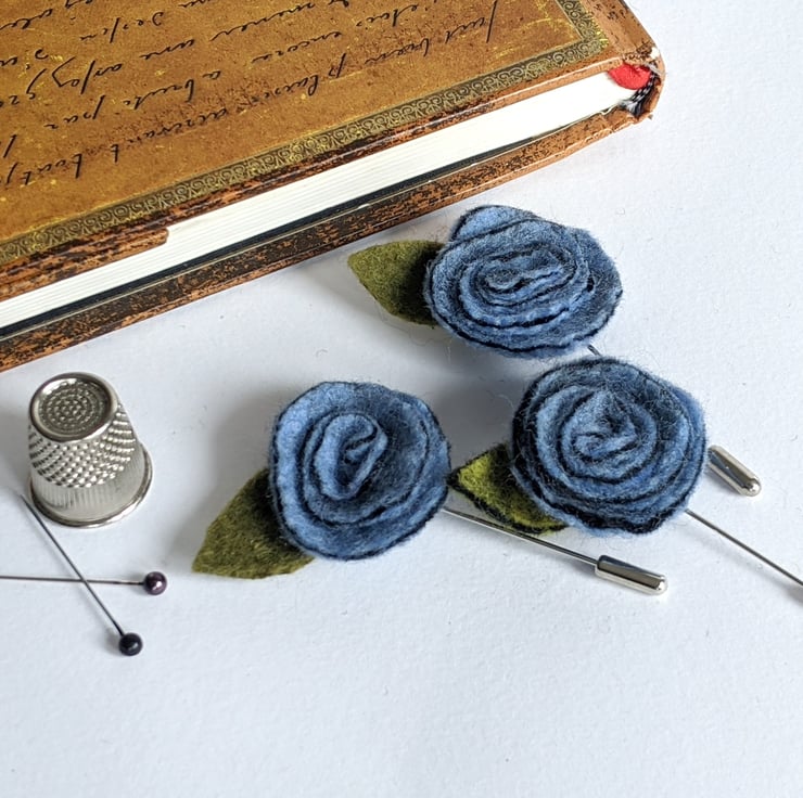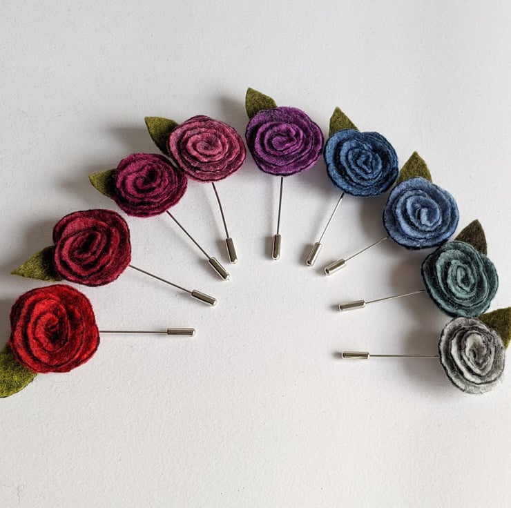 The rose is approximately 3 - 3.5cm diameter. From the centre of the flower to the bottom of the pin is 5.5 cm