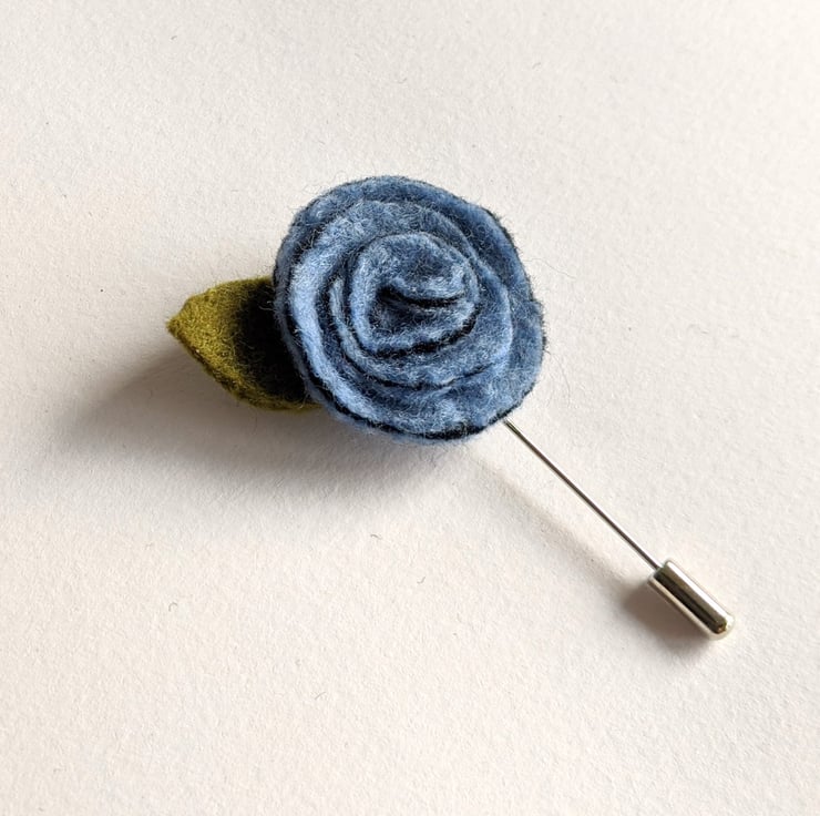 Small handmade, art deco inspired rose lapel pin or brooch, fastened with a secure hat pin.