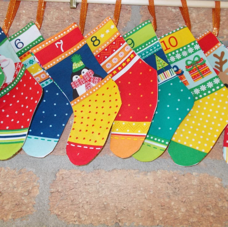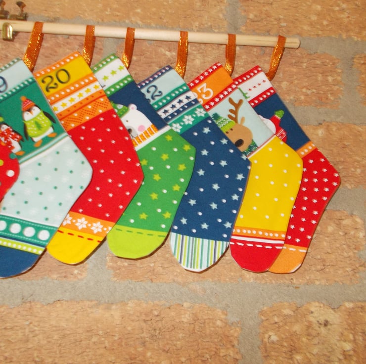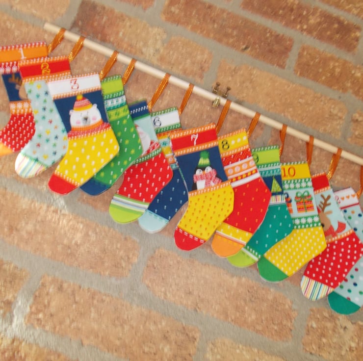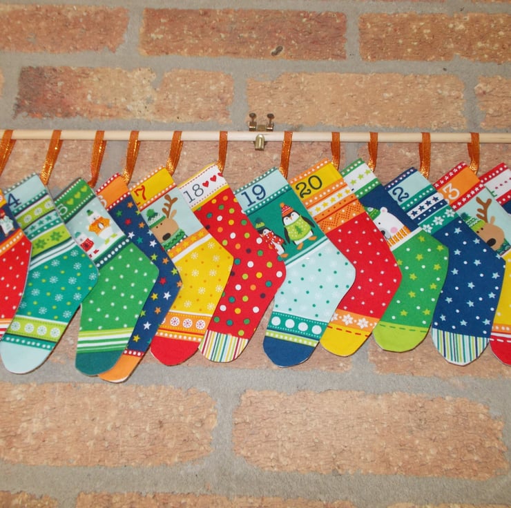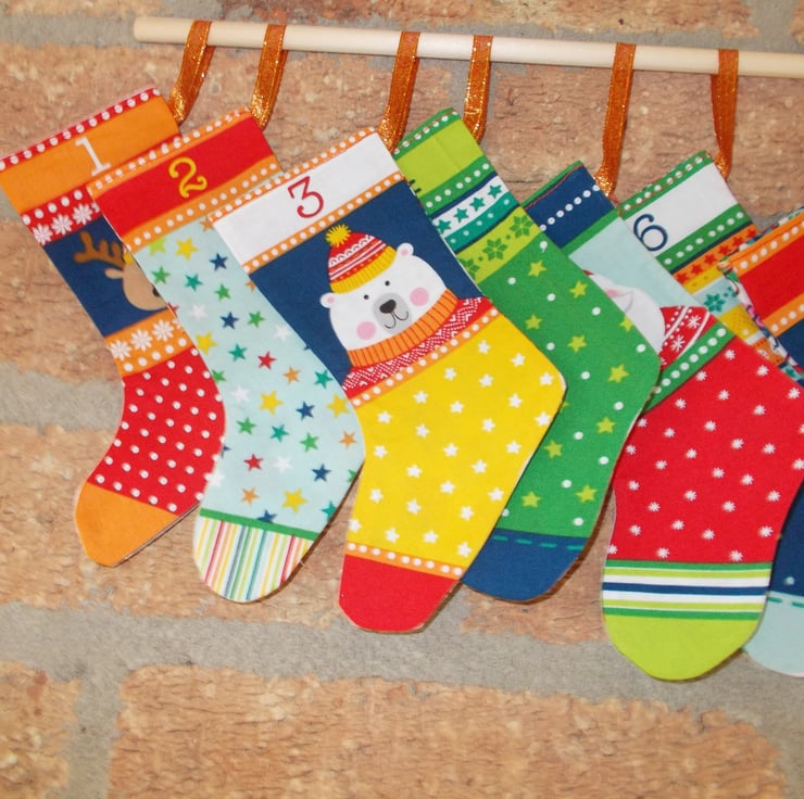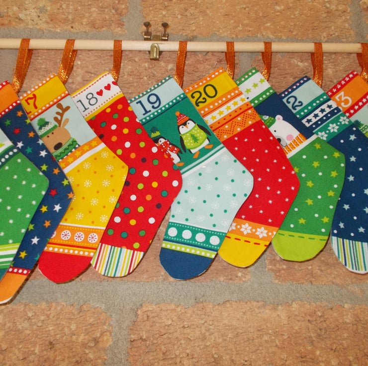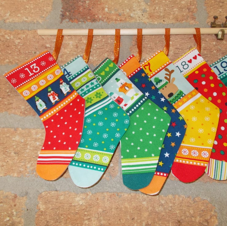 This beautiful reusable calendar can be used year after year. It consists of 24 individual stockings which can either be hung on poles or your Christmas tree. They would be great as hide and seek, hidden around the house with the Elf on the Shelf.