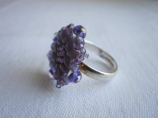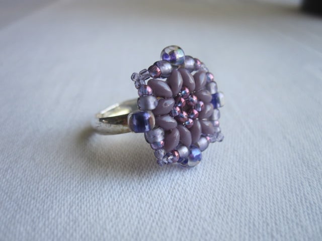 This beadwork ring is made using Japanese and Czech glass seed beads and mini duo beads. The square itself measures approximately 2cm across. The ring base is silver plated and is adjustable. This item will come with a gift box/case as shown in the pictures.