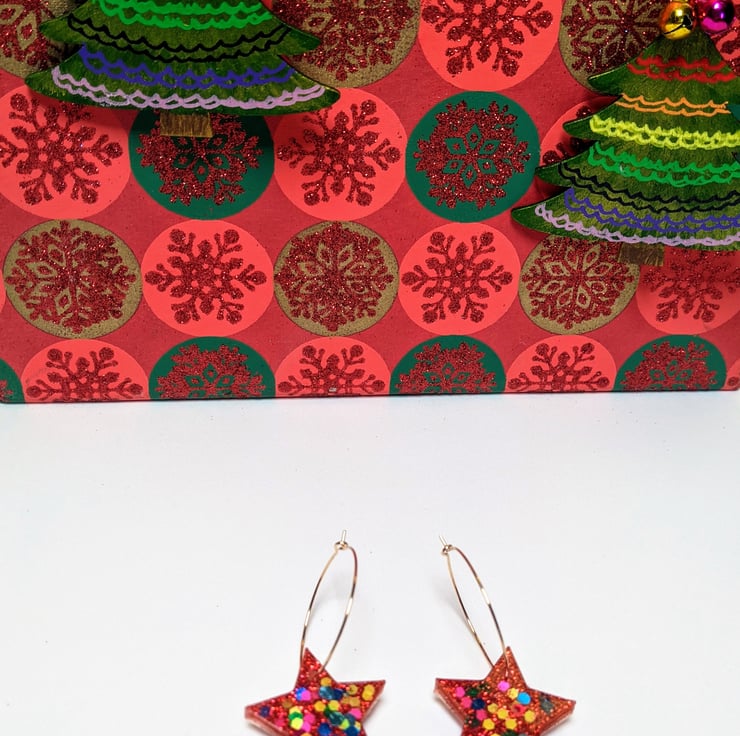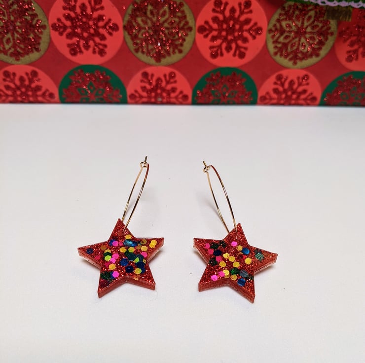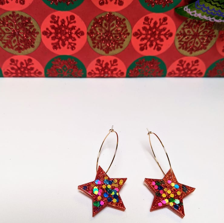 Beautiful statement hoops with the largest of the stars, swinging away merrily and catching the light,
