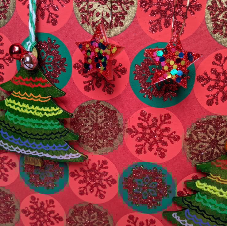 The large star is 30mm and sits on brass hoops, which are approx 32mm diameter