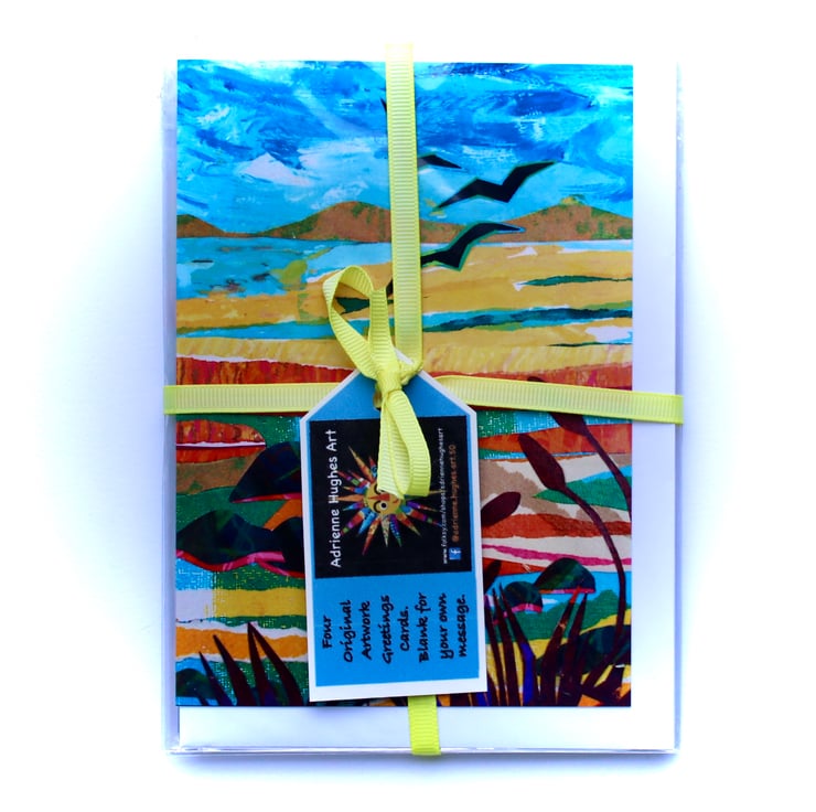 All the designs are from my original artwork in a range of styles including collage, acrylic painting, linocut, silk screen printing, pen and ink and watercolour-something for everyone!