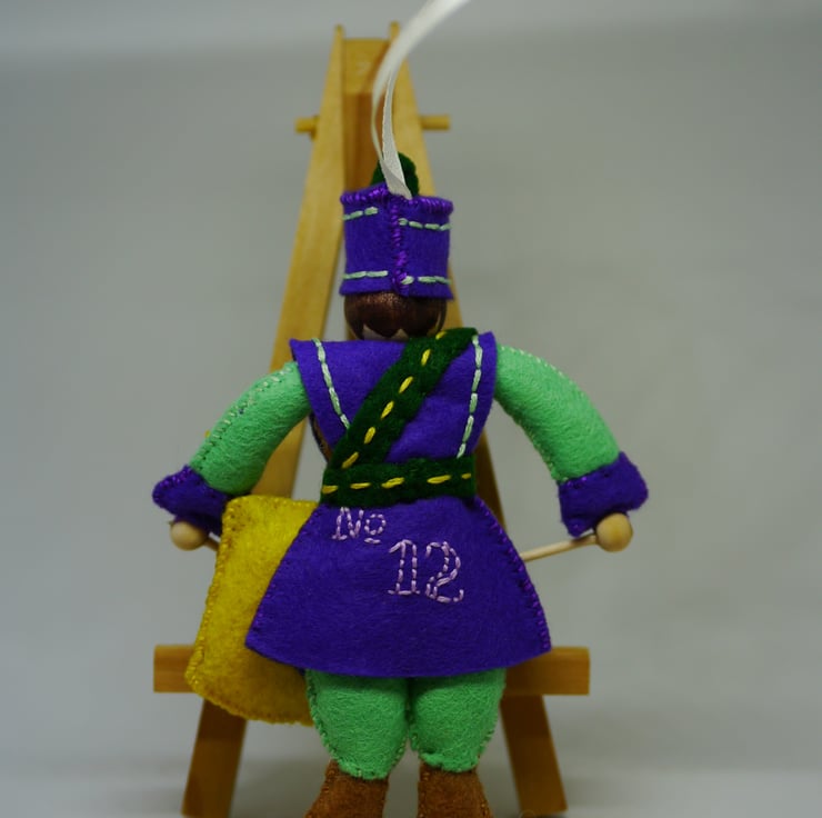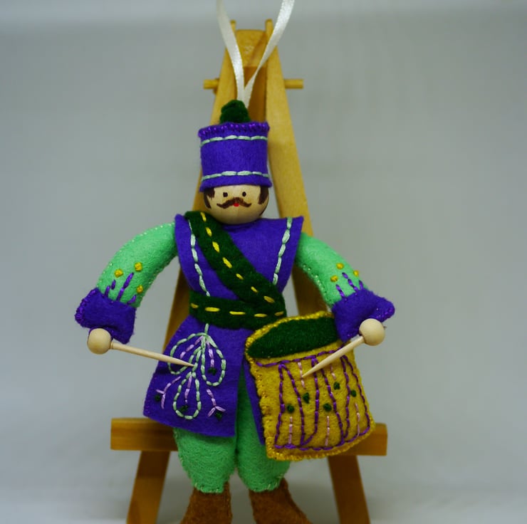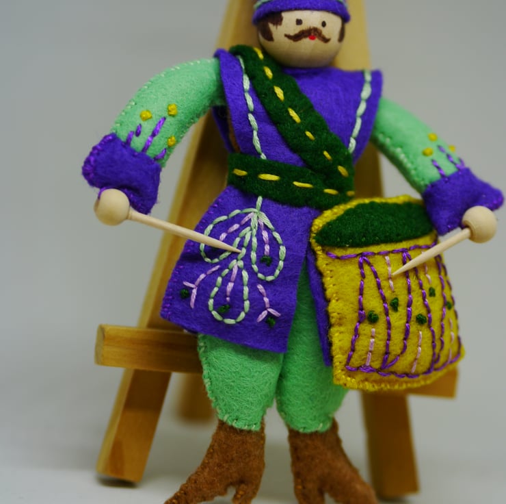 Approximate size Drummer four inches (10cm) by five and a half inches (14cm) excluding loop.