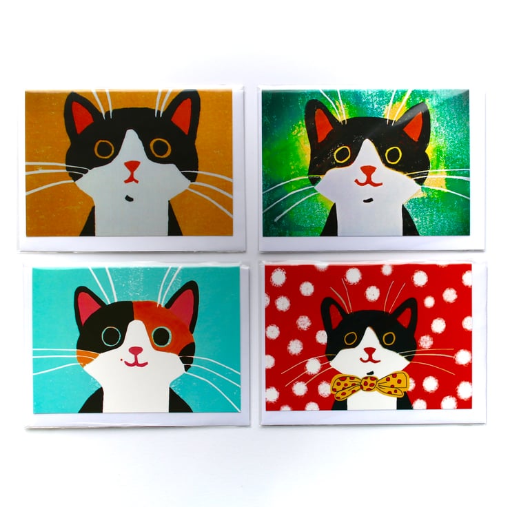 All the designs are from my original artwork in a range of styles including collage, acrylic painting, linocut, silk screen printing, pen and ink and watercolour-something for everyone!