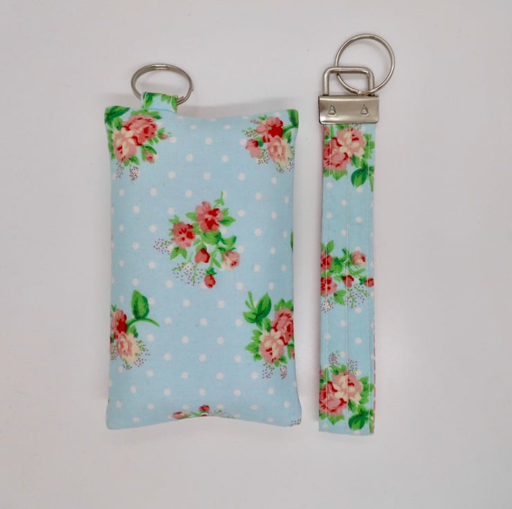 The strap of the matching keyring measures 13cm (so 26cm all the way round) and 2.5cm wide. It has been interlined, is topstitched and has a silver tone key ring.