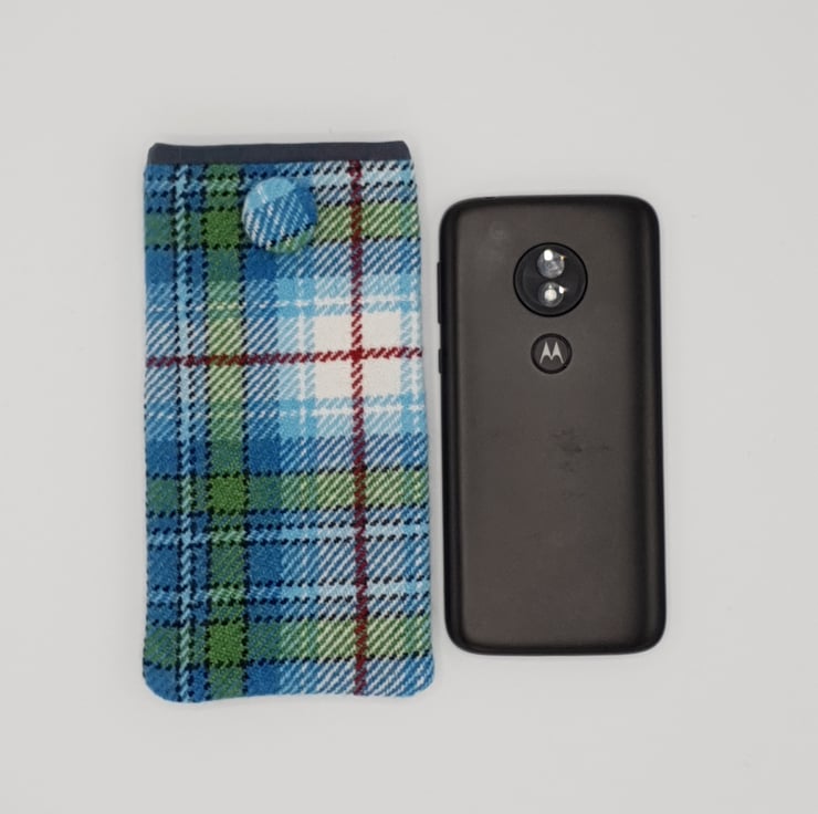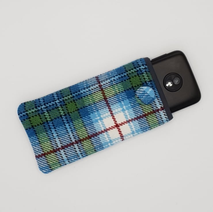 A beautifully soft mobile phone case lined with a cotton quilters batting for extra protection. Fastens with a button and strong elastic loop.