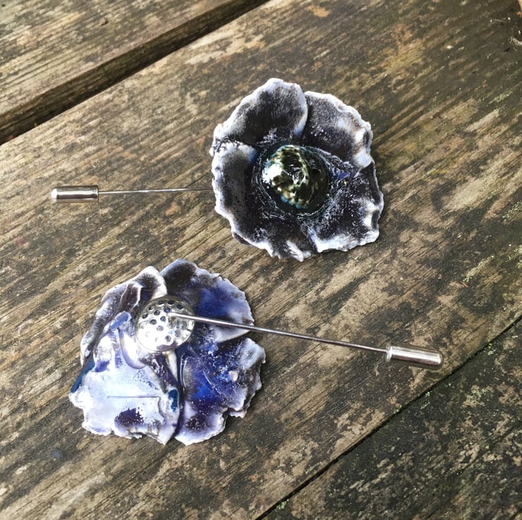The petals and the centres of these ceramic brooches are made individually from a quality fine white clay and i do not use moulds. The poppies therefore vary slightly in petal size and shape, this makes them unique and no poppies are ever the same. The photos show the slight variations in the poppy brooches that i make.