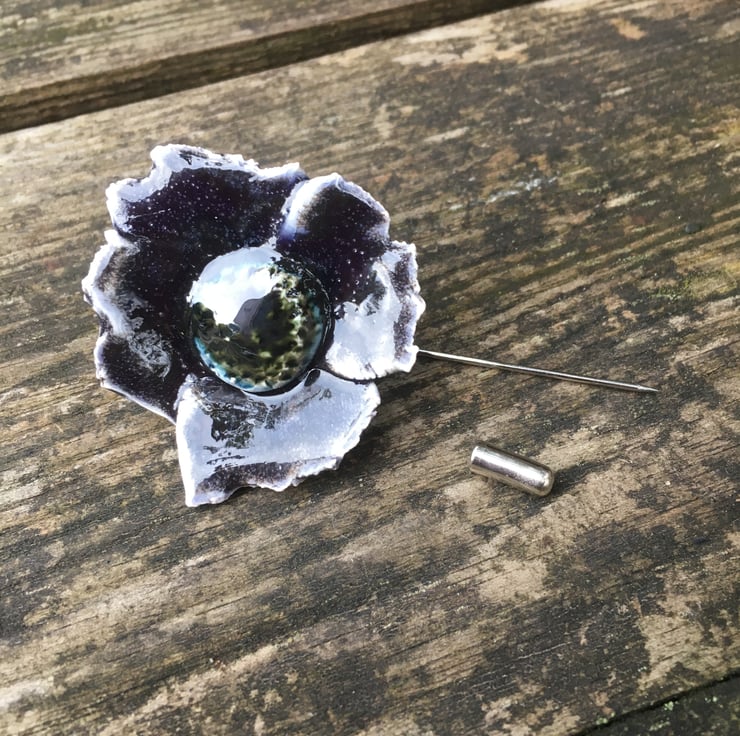 The metal pin of the brooch measures 6cm, and there is a removable safety stopper that fits over the end of the pin. Because of the long pin fastening they can be worn in hats or to pin a scarf, a very versatile piece of jewellery.
