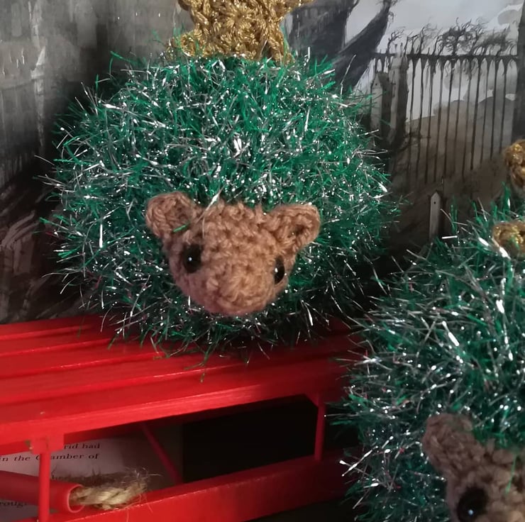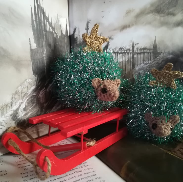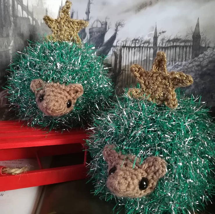 These limited edition great hall Christmas tree puffs I made using a sparkle green and silver yarn.