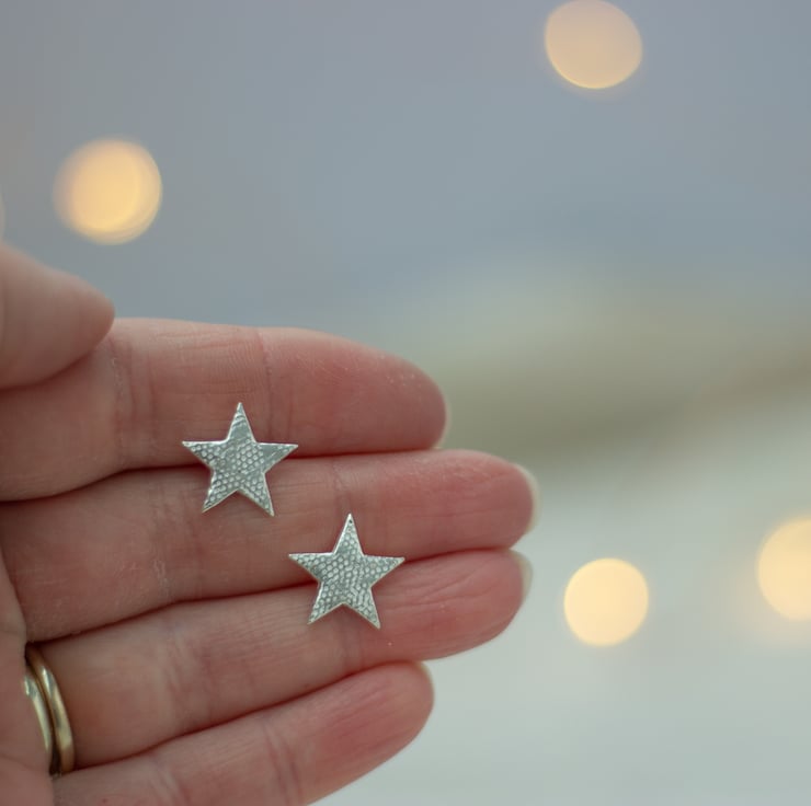 Gorgeous sparkly star stud earrings, handmade from recycled fine silver.