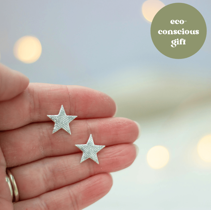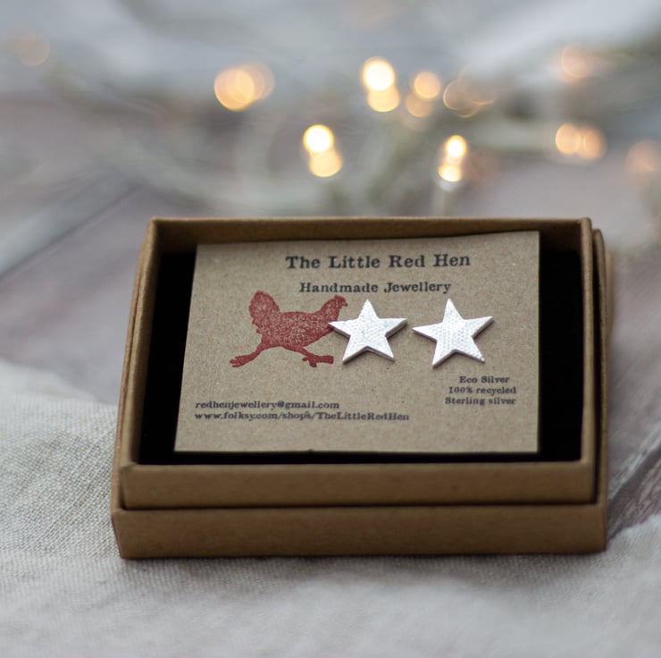 Silver star studs come gift boxed in my eco-friendly packaging, ready for giving!