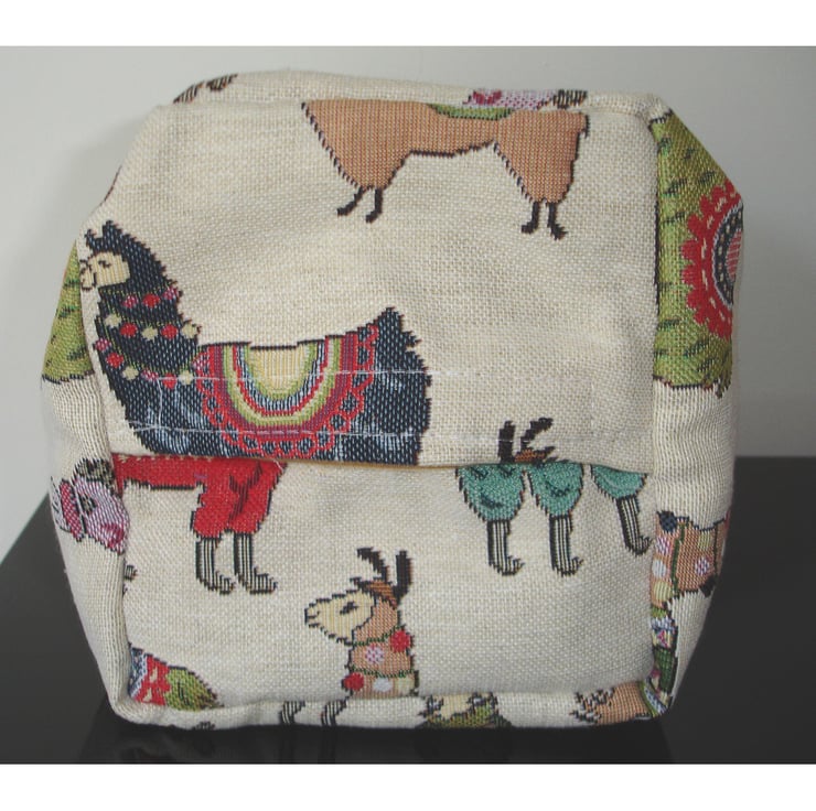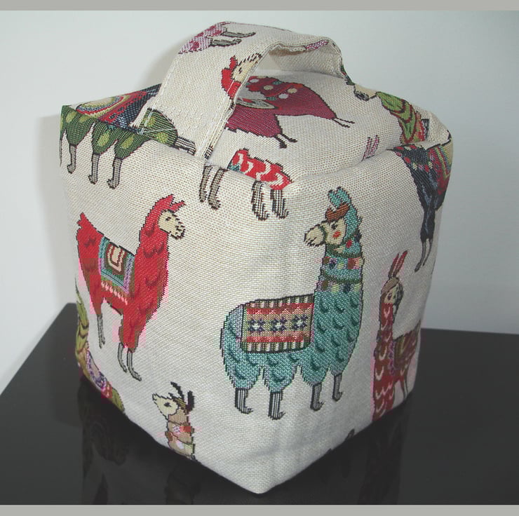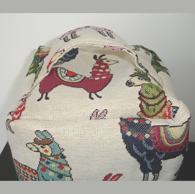 Llamas / Alpacas on a Tapestry Fabric - Red Green Blue Duck Egg