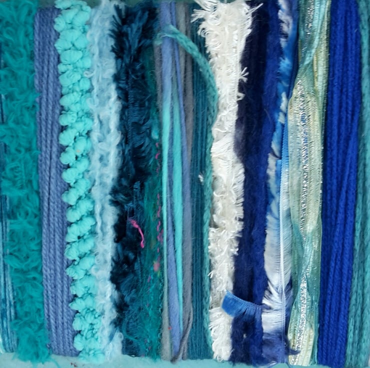 OCEAN - a blue loom with yarns in sea blues, greens and whites.
