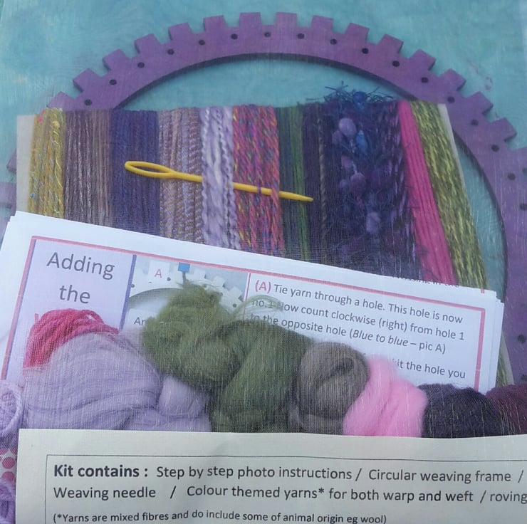 Get weaving with this circular weaving kit following the simple step by step photo instructions - a perfect introduction for beginners or a fun alternative to a traditional rectangular frame loom.