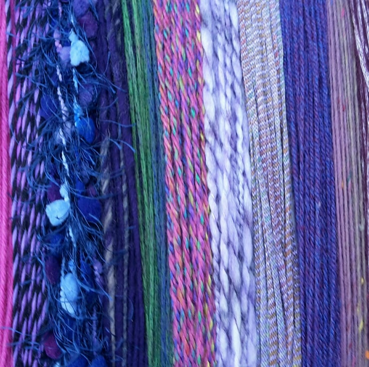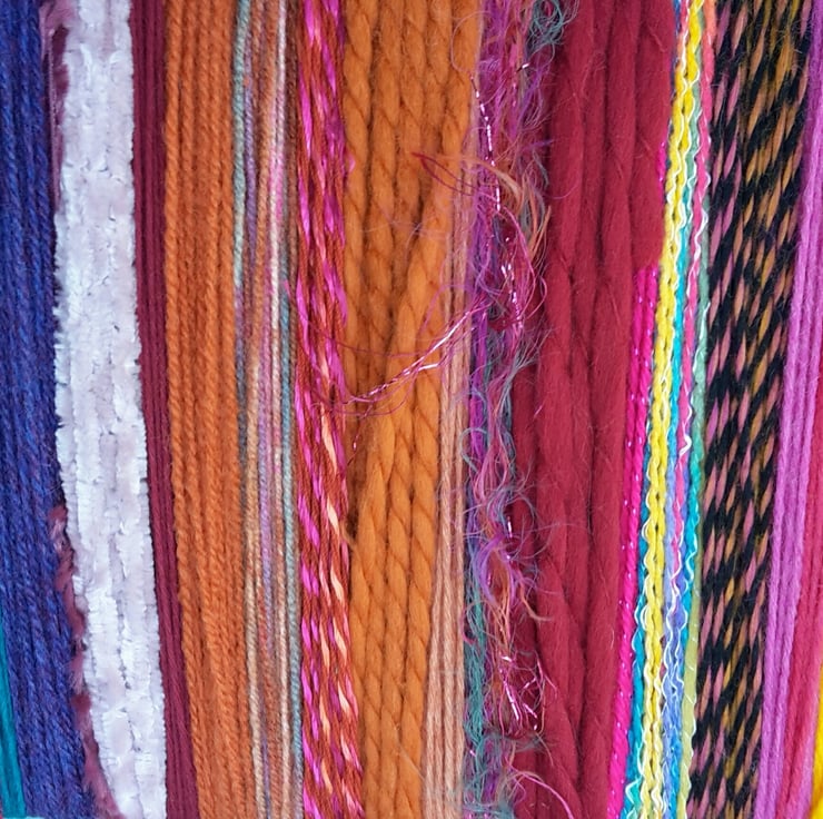 Selection of warp yarns, weft yarns and colourful roving (contains mixed fibres including wool)