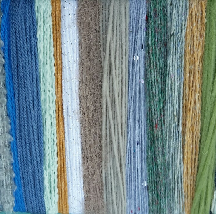 DUNE - a natural loom with yarns in soft tones - greens, greys. blues, ochre