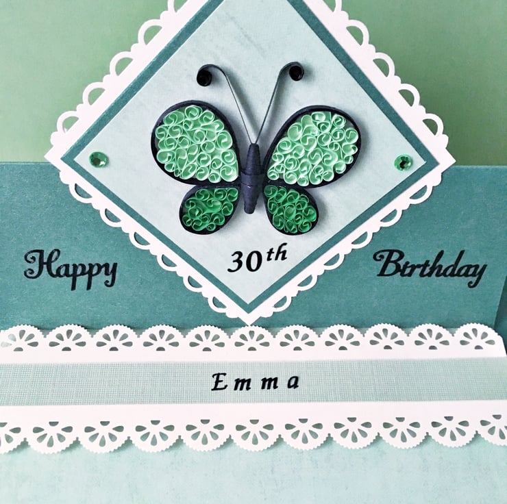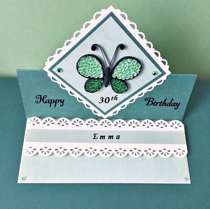 This easel card featuring a beautiful quilled butterfly will stand out from the rest on any birthday.