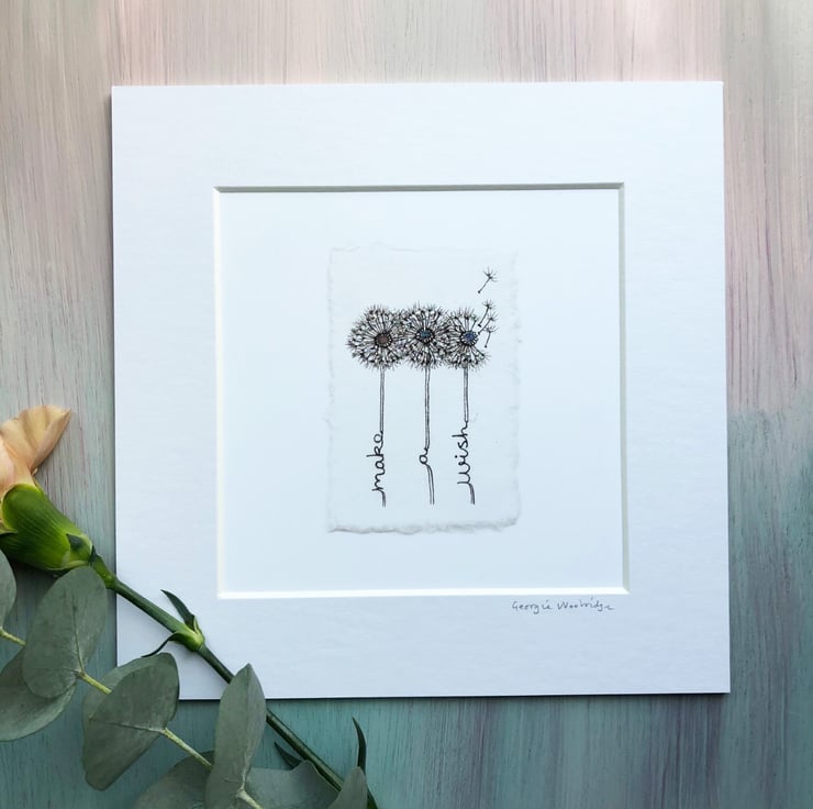 An ice white mounted print of my original artwork, 'Make a Wish'.