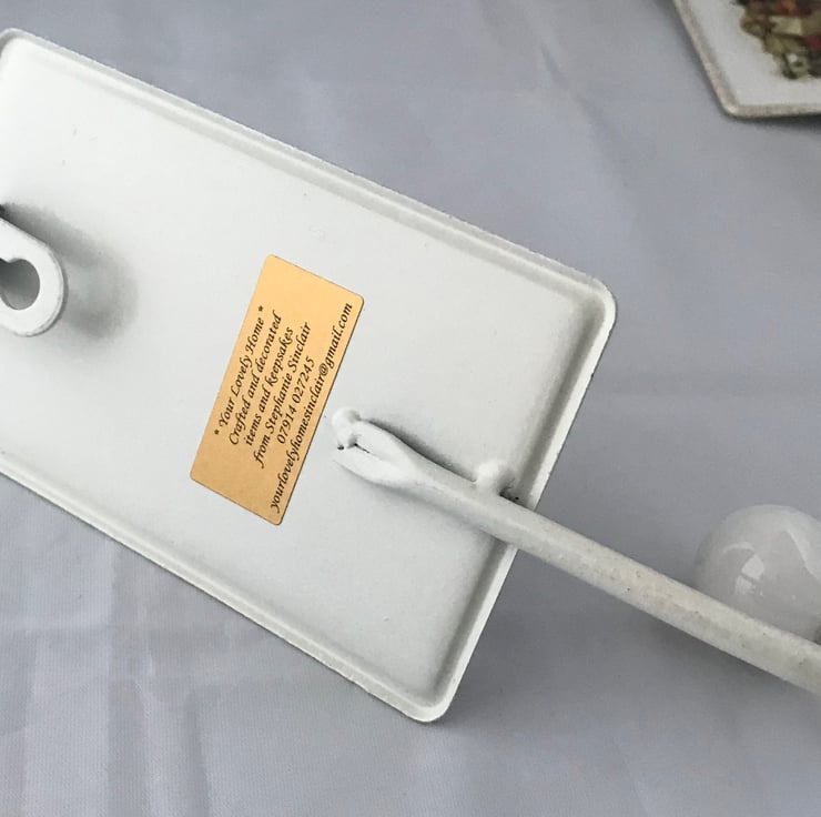 I have decorated three different styles (please see my other two listings) of this small metal wall hook with ceramic knob, which could prove useful over the Christmas season for hanging tea towels in the kitchen, a wreath in the hall, or for hanging stockings or gift bags in the living room - whatever you like, really!