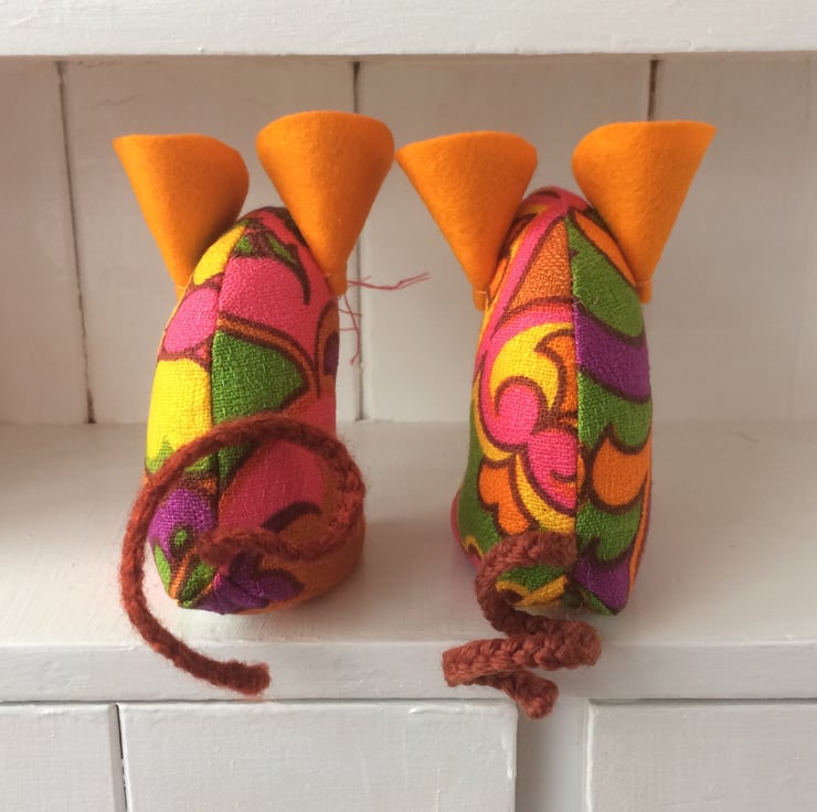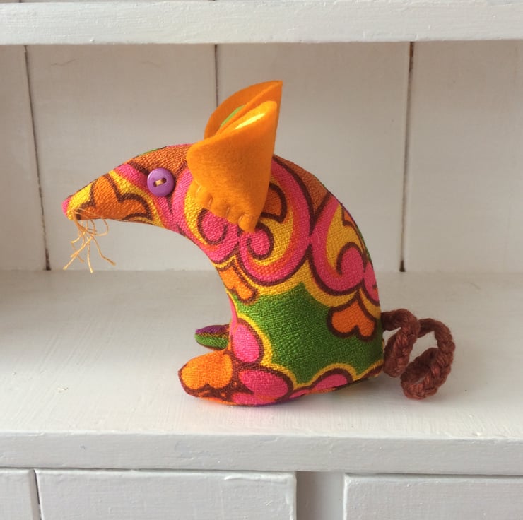 Vivid Mouse made in Vintage Fabric from WittyDawn. The ones in photos have sold but their siblings are all made in the same fabrics by myself.