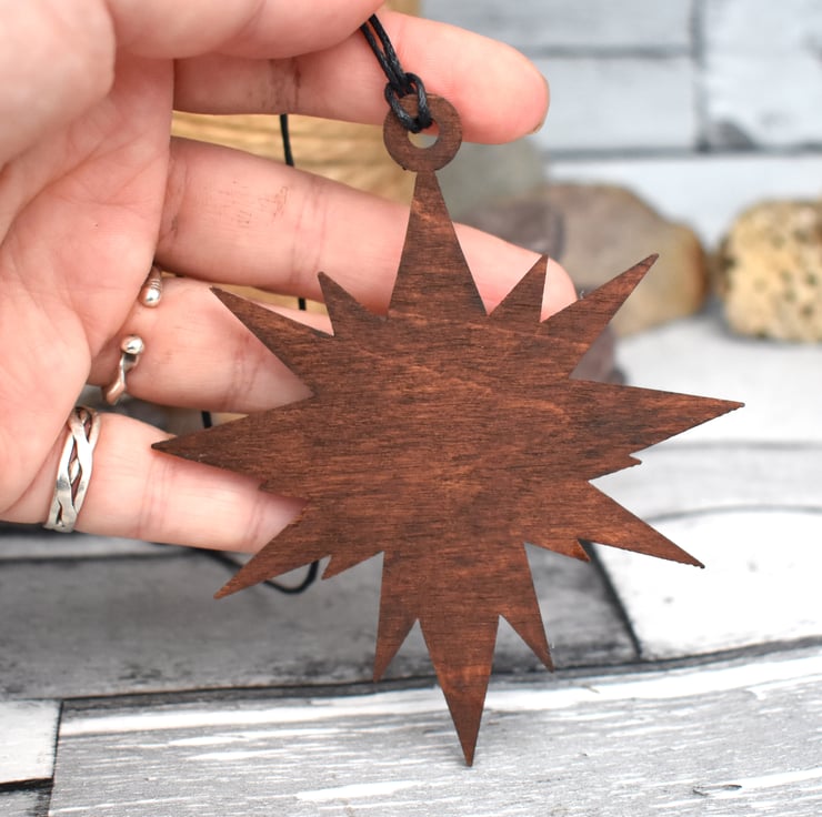 All of my creations are my own design and composition. Each piece is unique, no two will be identical. Please note, wood is a natural material and each piece has it's own knots and imperfections that make it beautiful. I seal the wood with varnish to help protect it. To care for your Christmas decoration, hang on your tree/wall/hearth. Avoid damp and direct sunlight. Store away with care when not in use.