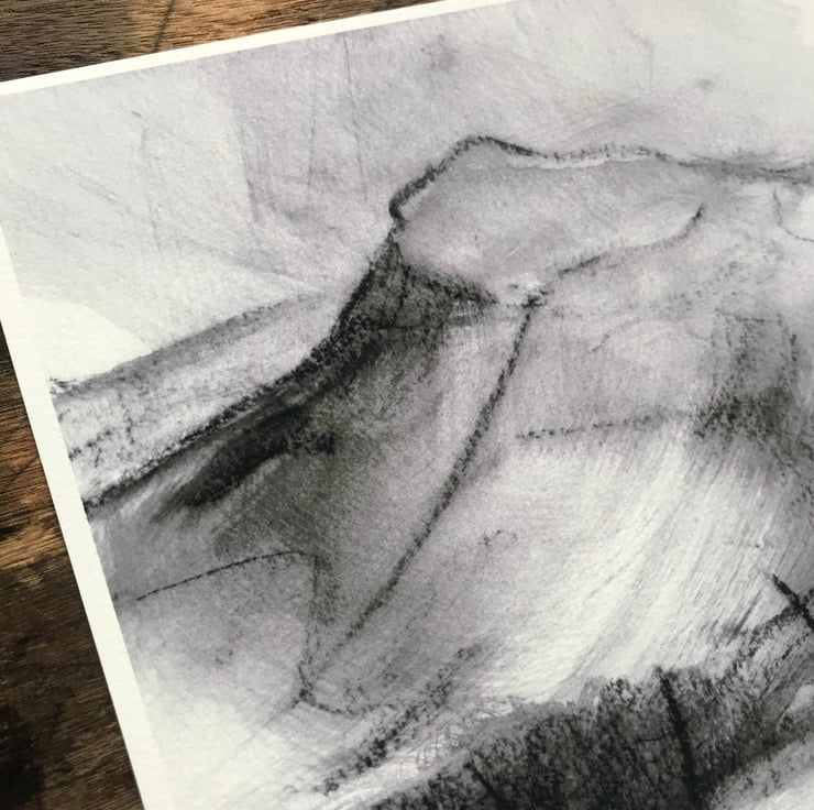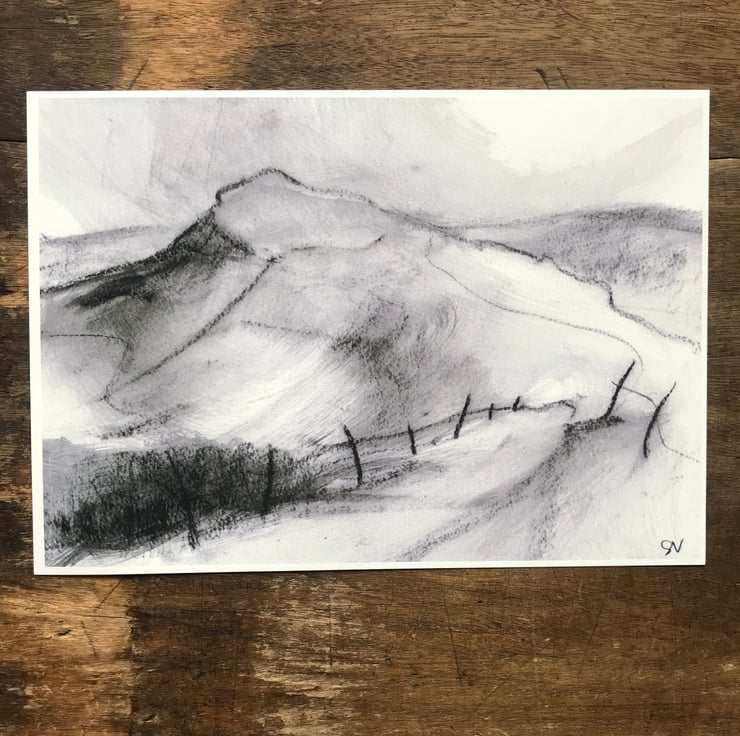 A4 print taken from my Conte crayon drawing of Mam Tor from Barker Bank above Castleton. Mam Tor is also known as the Shivering Mountain because of the frequent landslips that happen here.