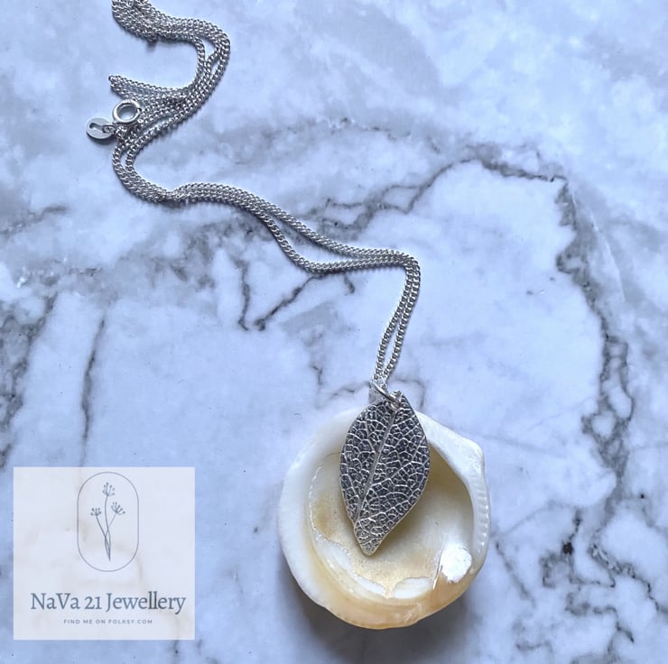 This pendant has been imprinted with a Mint leaf using Silver clay.
