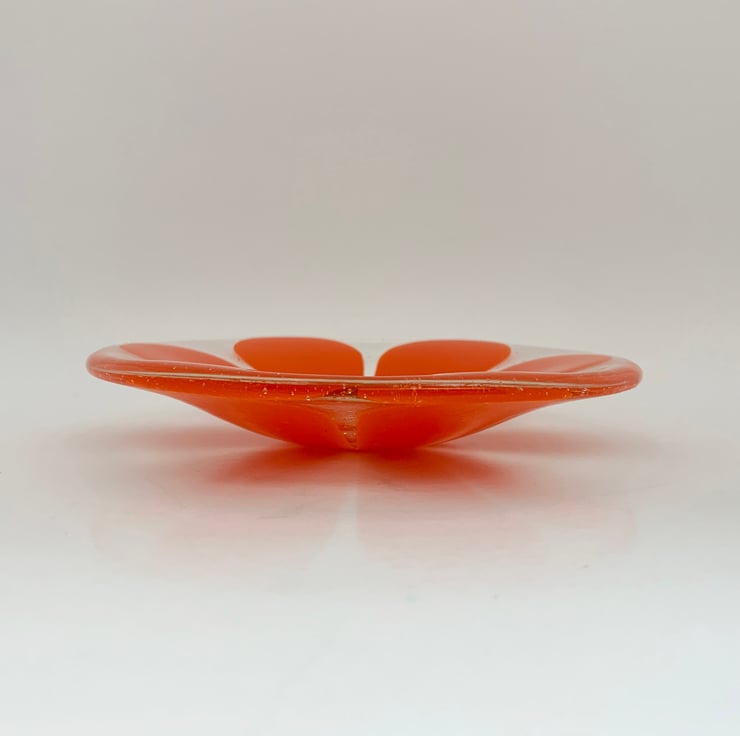Fused glass dish, inspired by my love of the retro design found on the ceramics, fabrics and wallpaper of the 1960s and 1970s. This would made a groovy gift for lovers of all things retro. It makes a lovely ornament on its own, or could be used for trinkets or even hold a tealight candle.