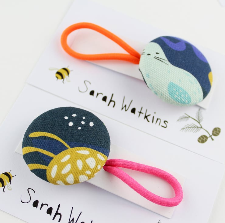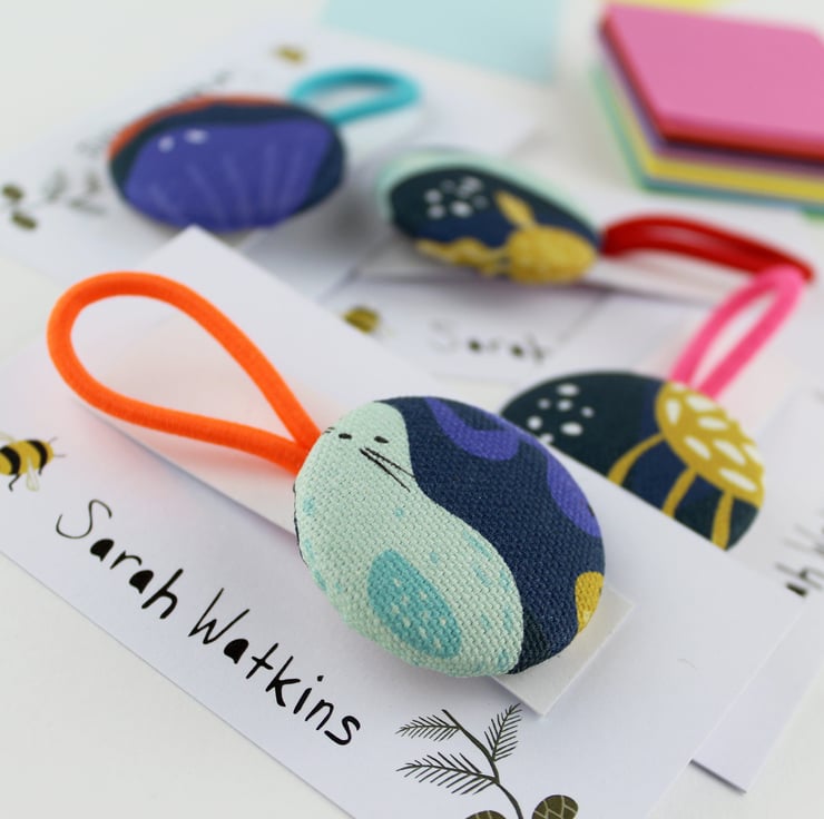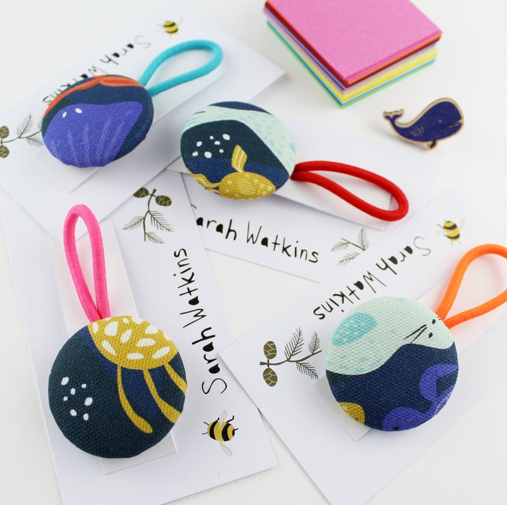 We love the colours on our sea life fabrics so much that we've made them into some NEW hair bobbles. The bright fabric covered bobble measures a whopping 4cm, and it has a gorgeous bright elastic no pull wrap, big enough for any ponytail style. The bobble would make a great stocking filler gift, or even a small extra for a friend or teenager. I also sell pin badges in the sea life range, and I can pack these together to make a unique and useful gift pack.