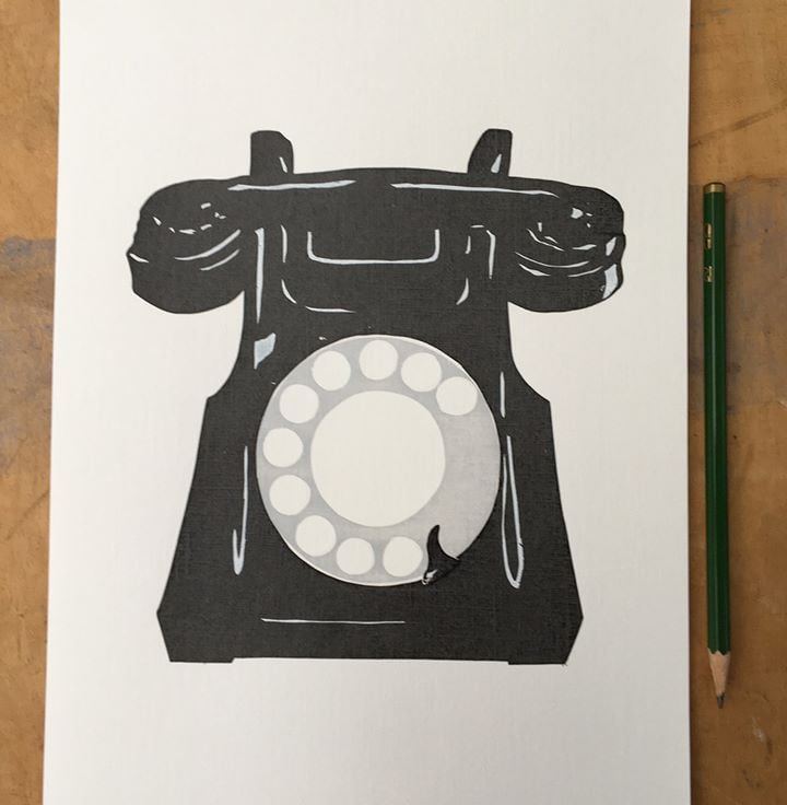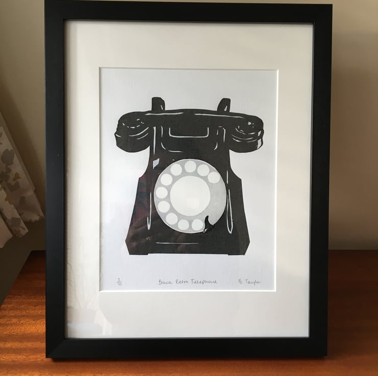 Black Retro Telephone - Handmade Silkscreen Print
