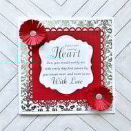 This white scalloped card measures 15 x 15 cm approx and comes with a matching envelope. It is blank inside for you to write your own personal message.