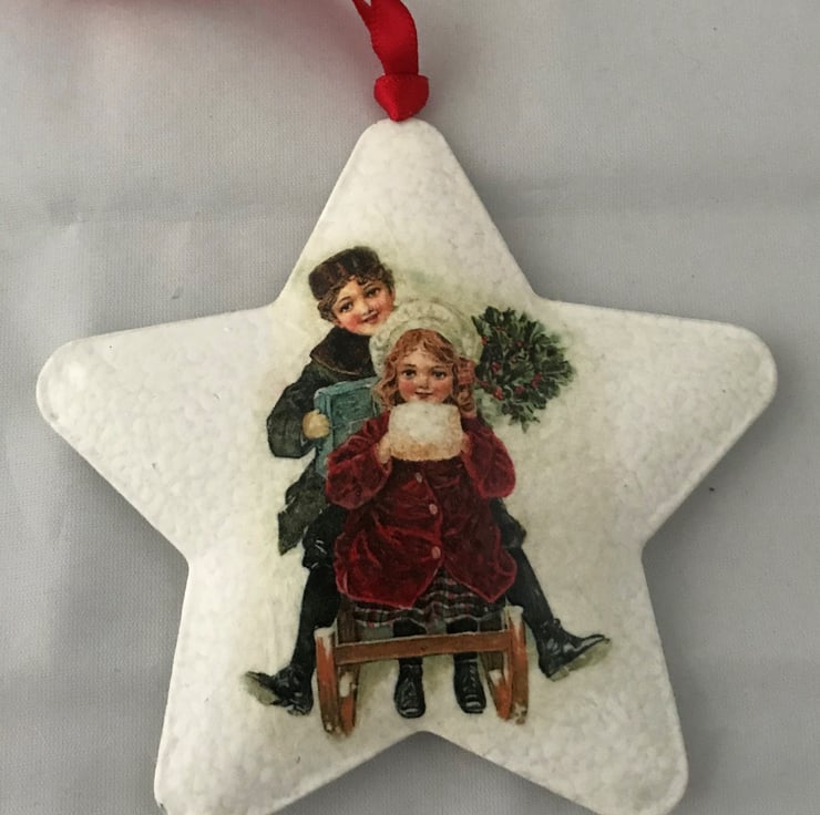 (This listing is for a single star decoration, Style Number 3, Children In Sleigh; please see my separate listings for the other two Styles/Designs)