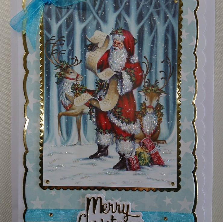 Christmas Card Santa Rudolph Reindeer Gifts Naughty Nice List 3D Luxury Handmade
