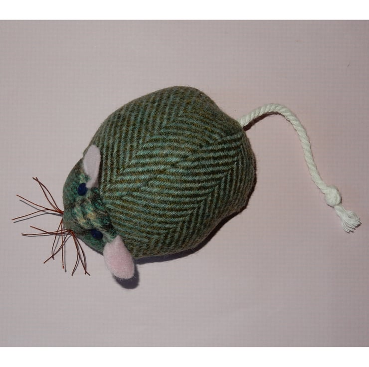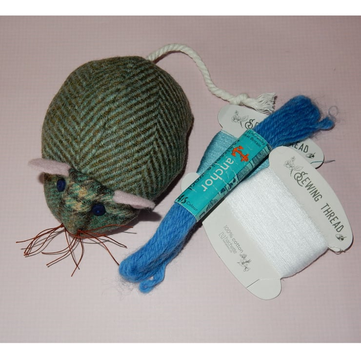 This tweed mouse pin cushion will add a touch of luxury to your sewing area or sewing basket. He's very cute and measures approximately 4 x 3 inches, (11 x 7 cm.) not including his tail.