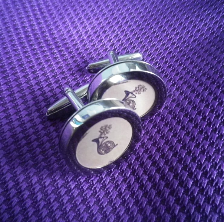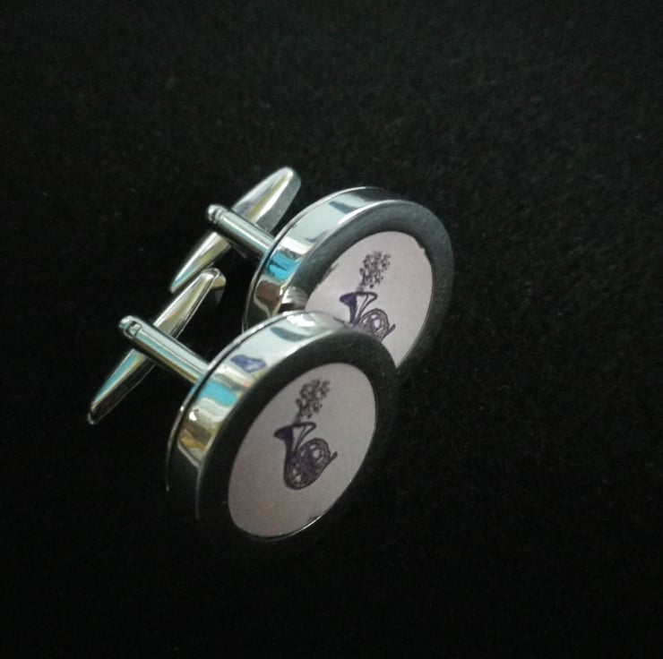 The cufflink sets have an even, smooth, highly polished silver finish, with a deep setting and a swivel action 'cigar' shaped shank for ease of use. Crafted from rhodium plated alloy the image has a 15mm ( 3/5" ) protective transparent film, plus you will receive these unique products in a neat presentation box, and we offer free shipping worldwide