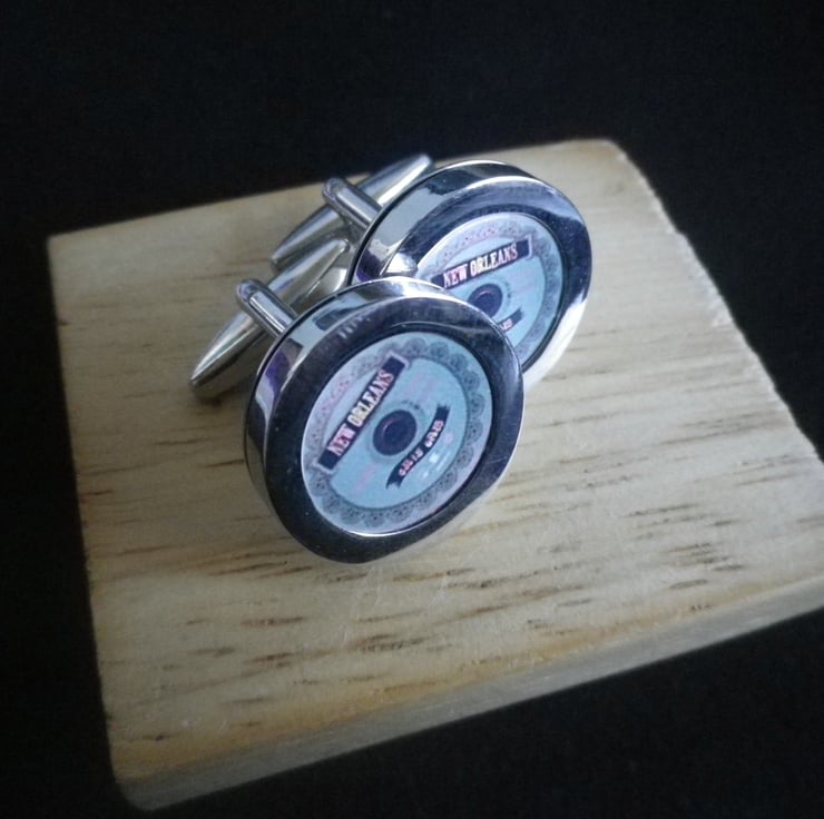 New Orleans cufflinks, free shipping, gift wrapped, terrific image, Ref 1234