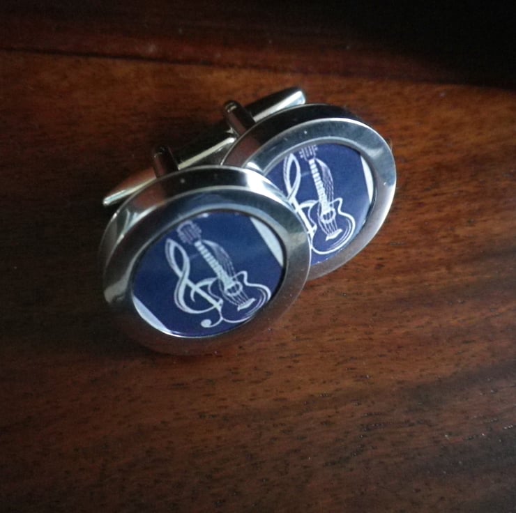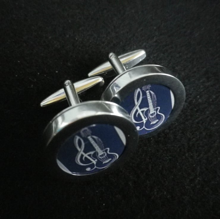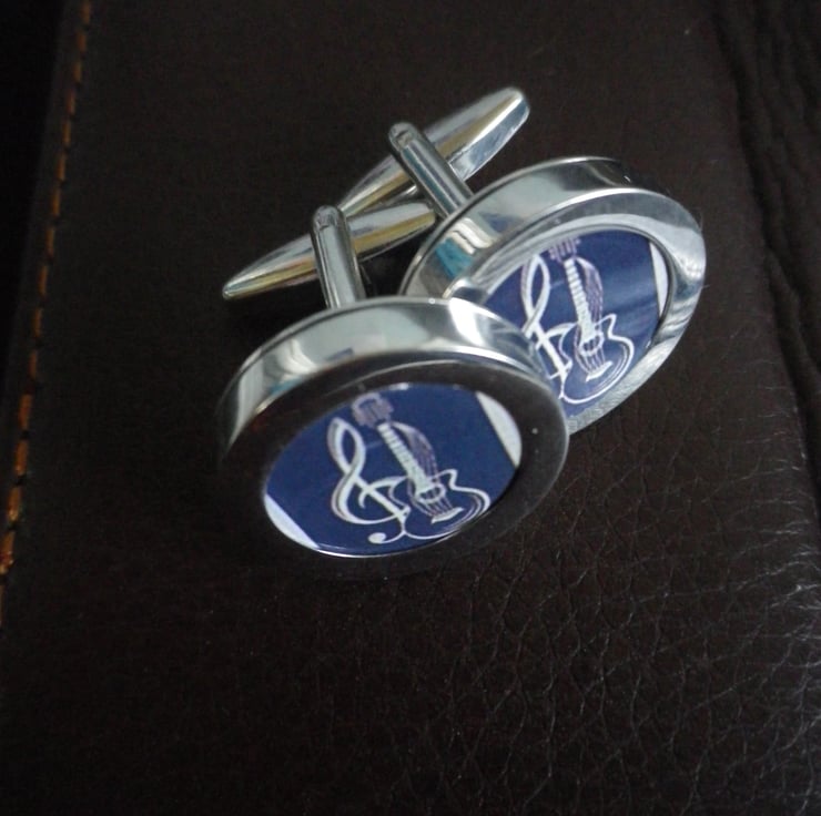 Clef and Guitar cufflinks, free shipping, gift wrapped, great image, Ref 1234