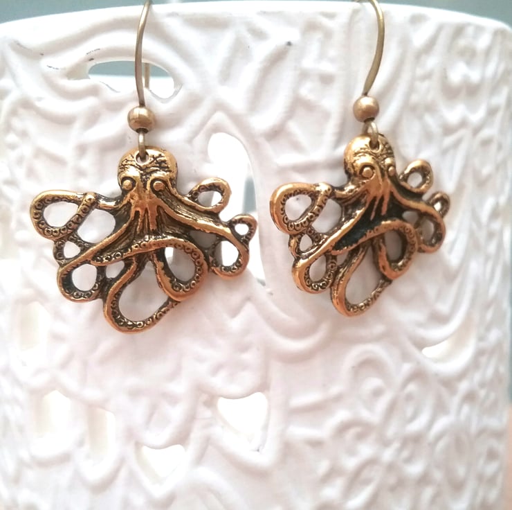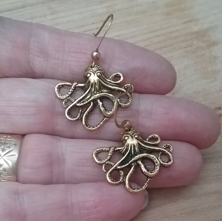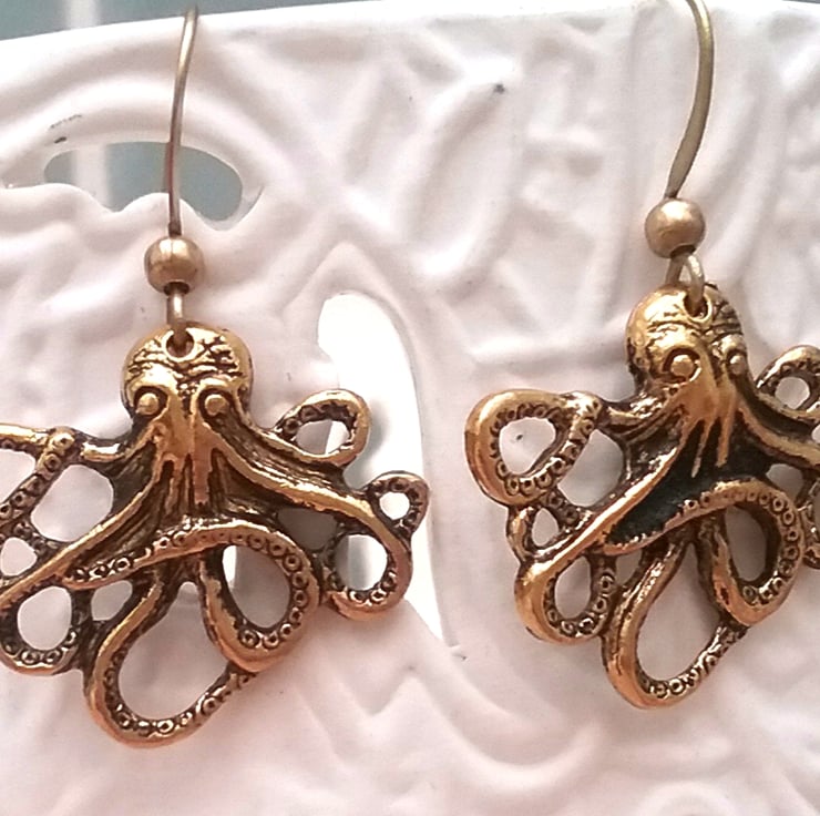 Cute little brass octopus earrings