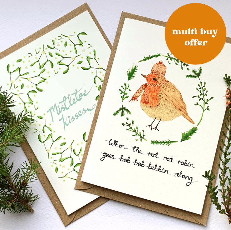 Pack of four of my illustrated Christmas cards including: