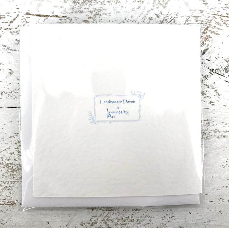 The card is 12.5x 12.5cm (13cm in envelope) and will post as large letter at £1.15 first class.