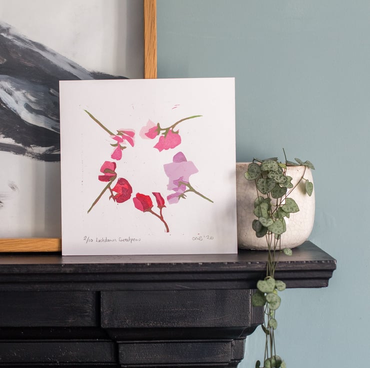 The only thing I've ever grown from seed! Watching our Sweet Peas, planted on the first day of lockdown really helped us get through those first long months! Have found nature in general to have gained importance to me this year, so wanted to honour these little flowers with their very own print