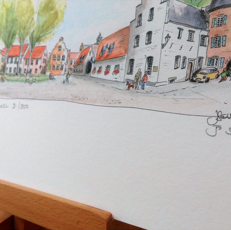 A limited edition Giclee print of 300, each print is individually titled, numbered and signed by myself. The original painting is created with pen and ink with watercolour.
