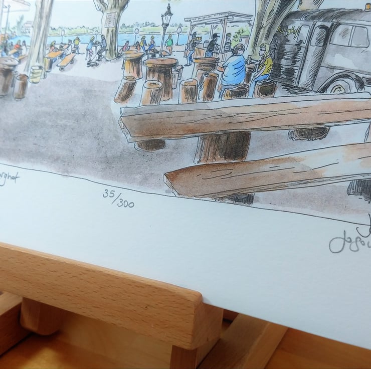 A limited edition Giclee print of 300, each print is individually titled, numbered and signed by myself. The original painting is created with pen and ink with watercolour.