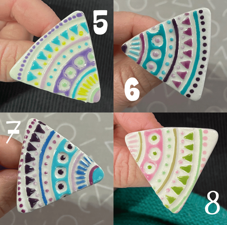 Next to the fun bit, applying colour! I hand paint each brooch using a combination of vibrant, contrasting underglazes. Before dipping in a glossy transparent glaze and firing for the final time. A brooch pin is then attached to each piece and ta-da it’s ready to wear!