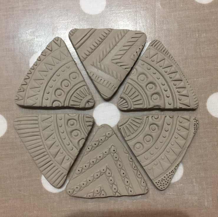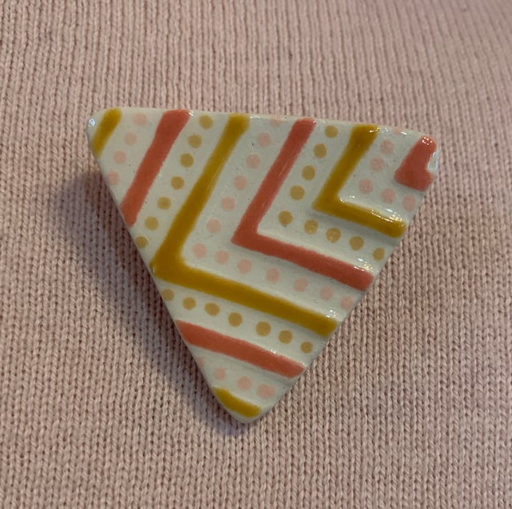 Made from white earthenware clay, this textured brooch ishandmade from start to finish. Initially the patterned texture is applied to the surface of the clay using a zig zag wooden block. Each piece is then air dried for several days before being kiln fired to form bisqueware.